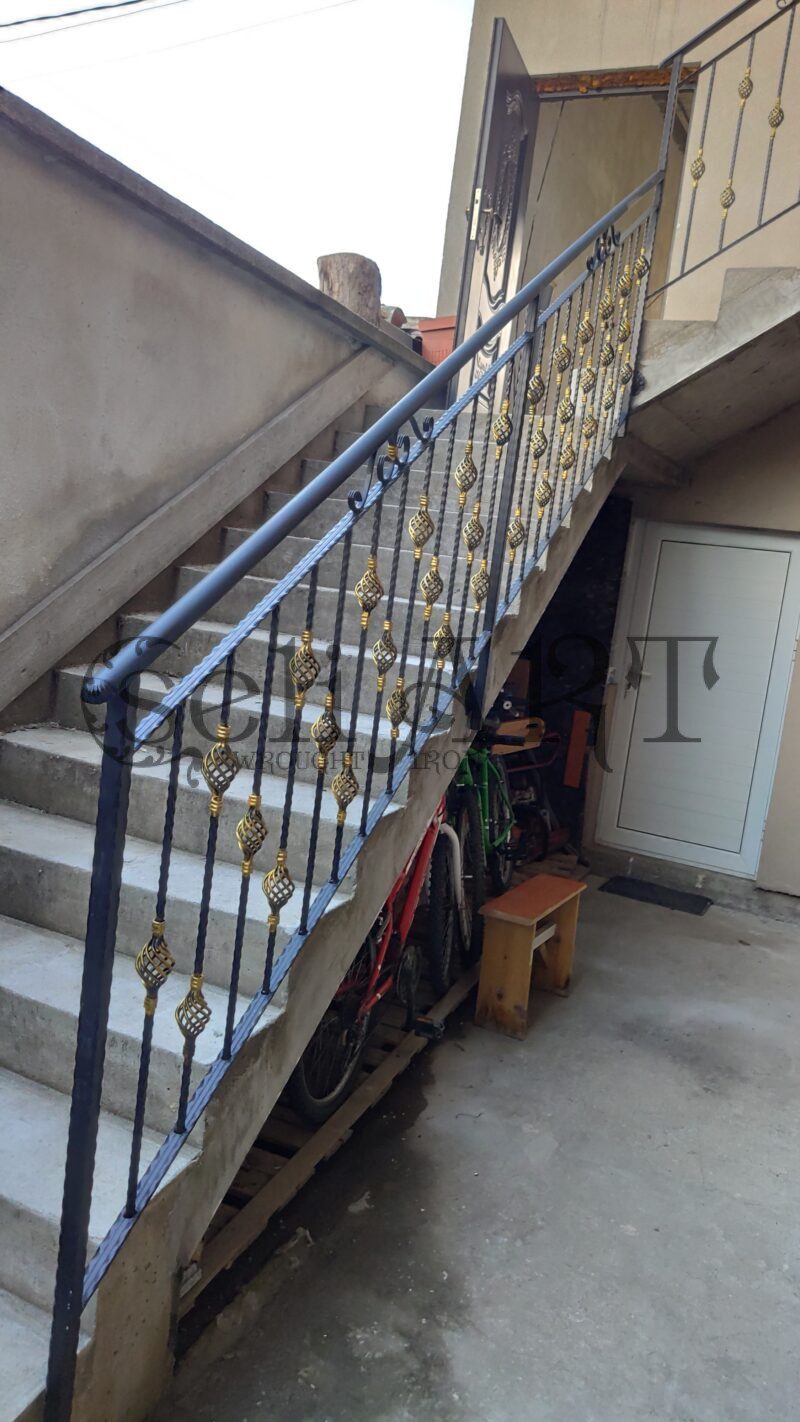 Парапет от  ковано желязо с метална  ръкохватка. Изработва се по поръчка и размери на клиента. За да получите цена за този модел, моля натиснете изпрати запитване.
